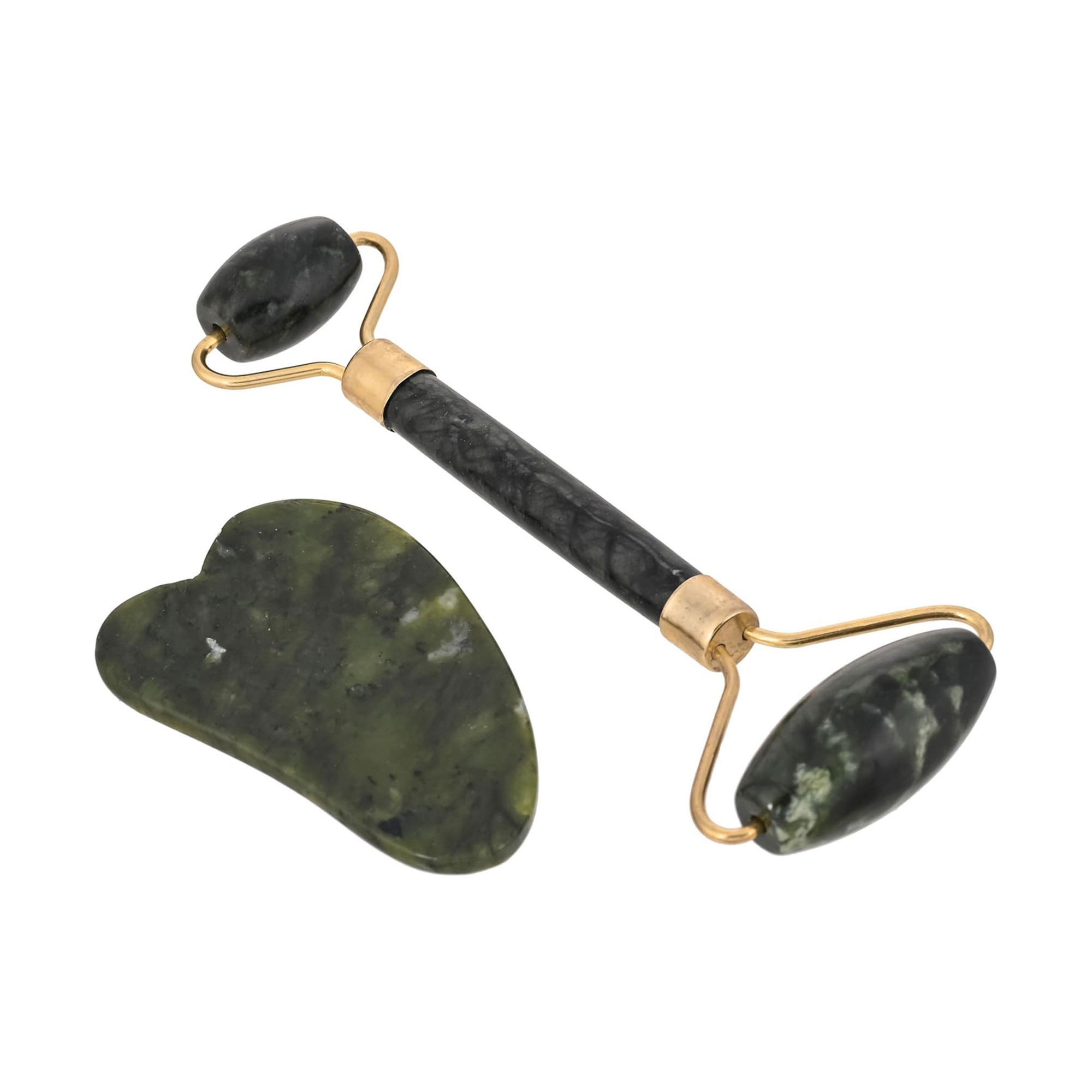 2. حجر الغوا شا (اليشم الطبيعي) أداة تدليك تقليدية تساعد في تحديد ملامح الوجه وتصريف السوائل الزائدة لتقليل الانتفاخ، مما يمنح البشرة مظهراً مشدوداً وأكثر حيوية.