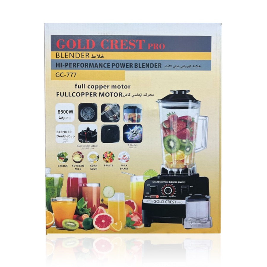 إليكِ خلاط Gold CreSt المطور، الوحش الذي لا يقف في طريقه شيء. بقوة 6500 واط، هذا ليس مجرد خلاط، بل هو مطحنة احترافية قادرة على تحويل الثلج إلى ناعم كالقطن والحبوب إلى بودرة في ثوانٍ معدودة.