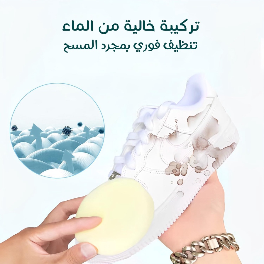 "رجع حذائك جديد بمسحة وحدة! 👟 كريم تنظيف احترافي للأحذية البيضاء والجلدية. يزيل البقع الصعبة فوراً بدون غسيل أو ماء. آمن على جميع الخامات. اطلبه الآن."