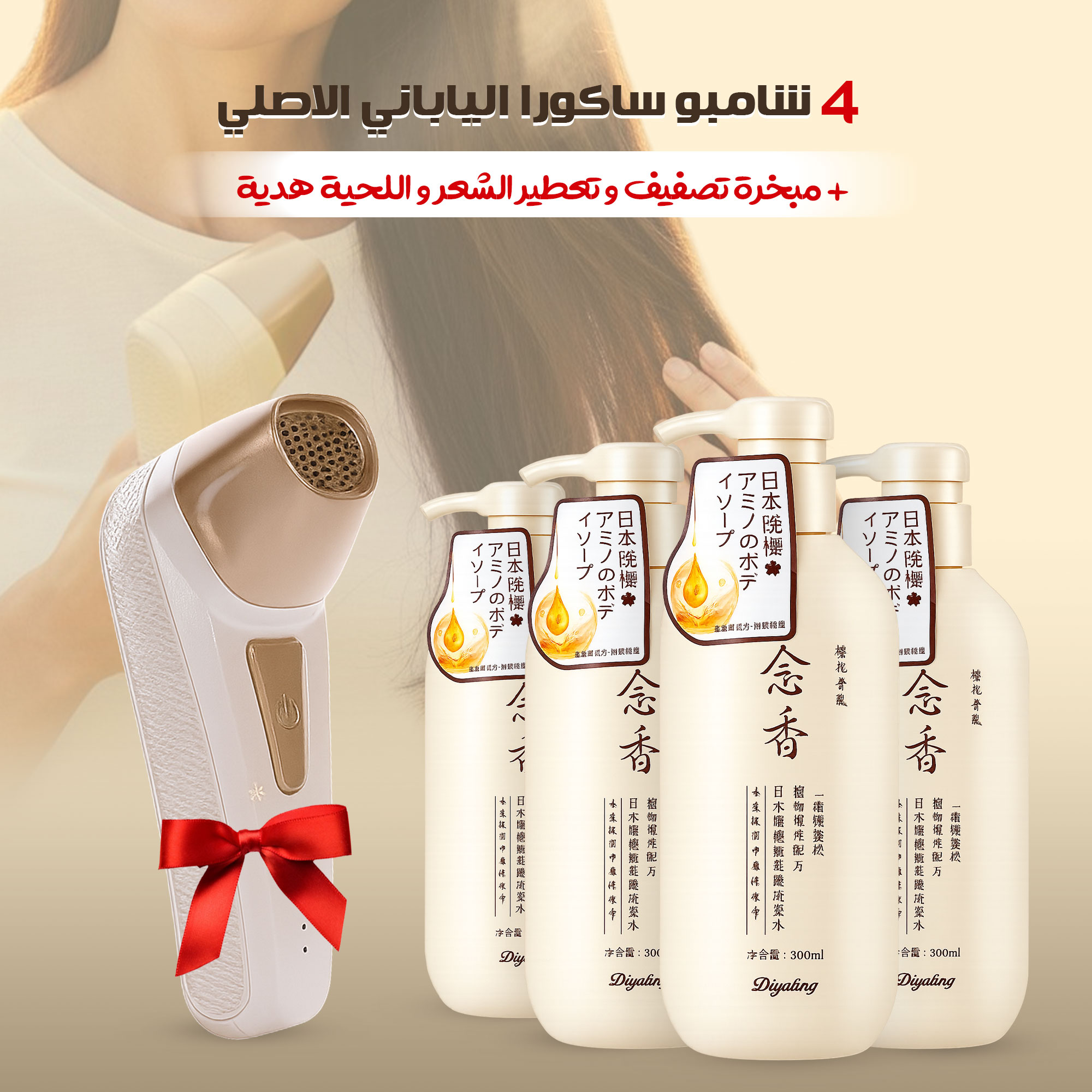 عرض العناية والتعطير المتكامل (5 قطع) - شامبو ساكورا الياباني الأصلي والمبخرة الإلكترونية الذكية