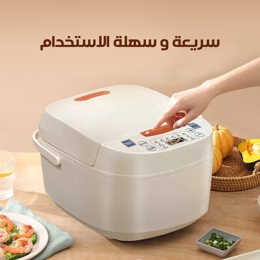 "طبخك جاهز بلمسة زر! 🍲 قدر كهربائي ذكي 5 لتر بـ 8 برامج طبخ. ميزة الحفاظ على الحرارة ومؤقت 24 ساعة لتجهيز السحور والفطور تلقائياً. اطلبيه الآن لرمضان مريح."